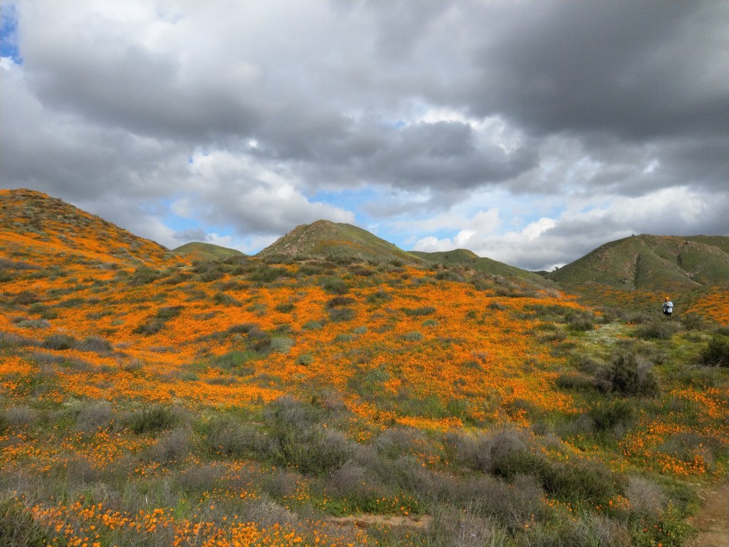 California had a rainy winter in 2018. In fact, winter lasted until April 2019. It was really great to see San Diego with green mountains for a while. What got me excited with all the rain was the possibility of a Super Bloom. I still regret missing the 2017 bloom in Carrizo Plain NM that I was determined I don’t miss the potential this year. Well guess what? A superbloom did occur! The first post I notice I saw was from this lady in the hiking group I’m in- Walker Canyon in Lake Elsinore.