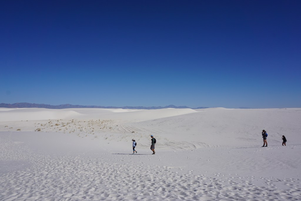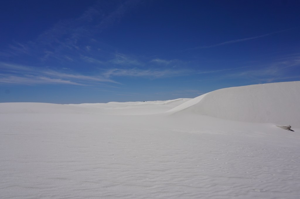 I’m really proud of her for this hike. The area is vast, exposed, and very white- it’s easy to get discombobulated and lose your sense of direction. The contrast of the San Andreas Mountains background and white gypsum foreground makes you wonder how all these sands came to be.