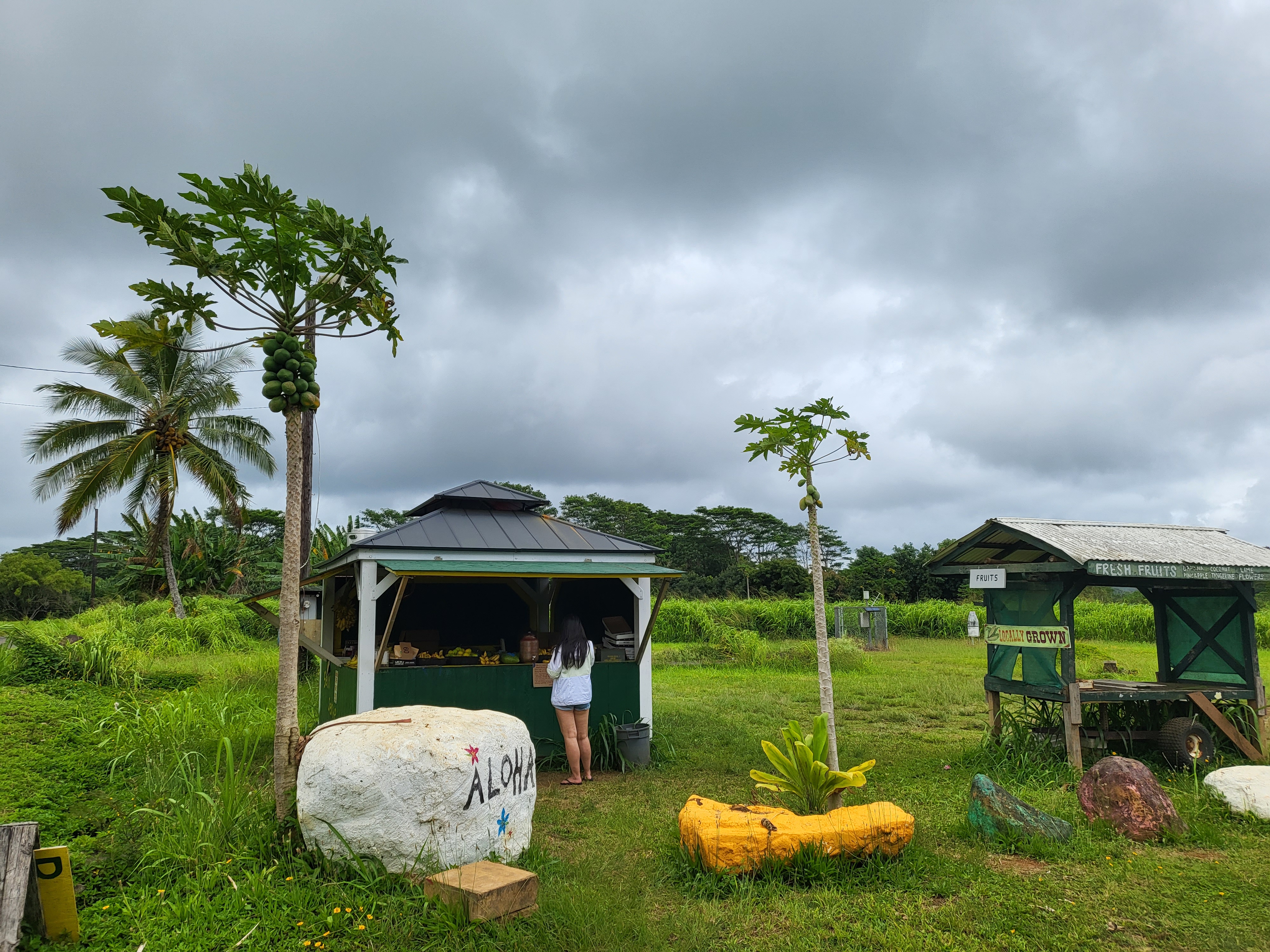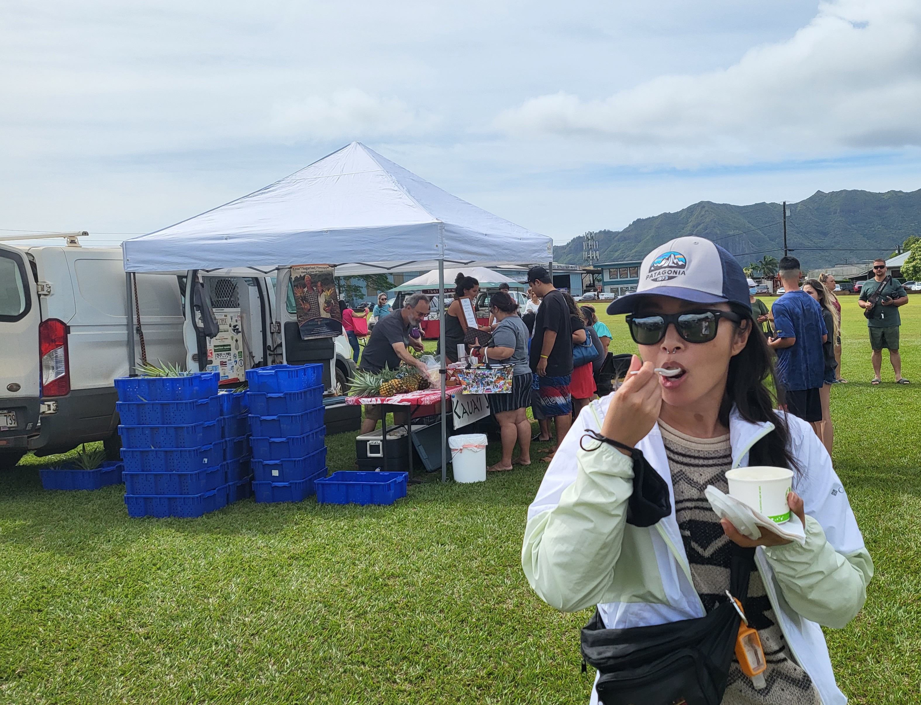 There was a farmer’s market happening nearby so we drove to Grove Farm Market to check it out. There we found some sugarloaf pineapple (definitely try to find this!). It was definitely the best pineapple I’ve eaten. It was sweet but not tart. I also rediscovered an old vegetable that I haven’t seen since I was a kid in the Philippines. It’s called the kamias and I was overly excited. I bought bag and bit into it… The taste is super sour and tart. It is not a vegetable you just bite into. But it was a nice nostalgia trip.