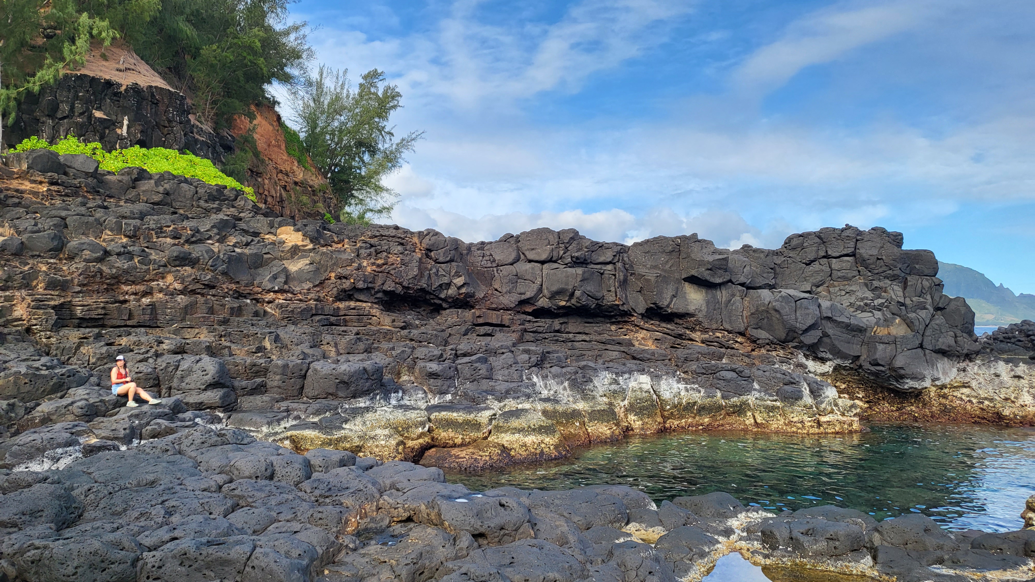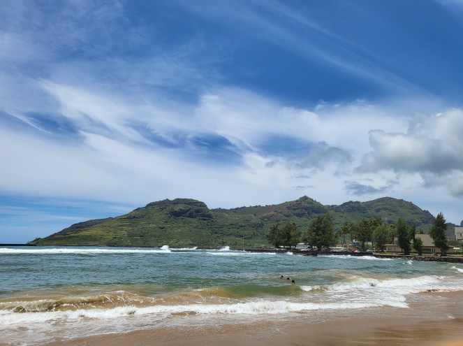 Unfortunately, we could only get Haena State Park Passes for the 430p window so we decided to kill time at Tunnels Beach. Well, everyone had the same idea and we couldn’t find parking. We turned into a random street and found a beach access path in the neighborhood. We found a nice little beach that had only two other people situated far away. We practically had the beach to ourselves for 2hrs before other parties trickled in.