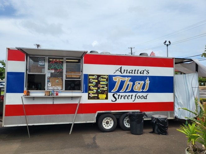 We continued our drive to Kalapaki Beach. We didn’t go in the water because our focus was on sightseeing. We stopped by this Thai food truck, Anatta’s Thai Street Food, for a light lunch. Once again forgetting to take pictures of the food. At least I got the food truck this time.