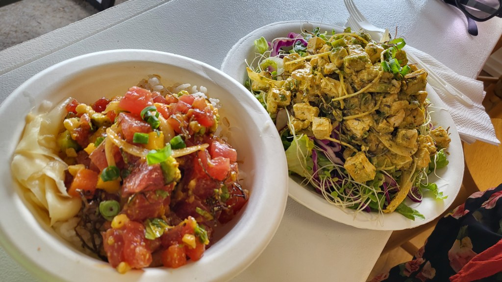 We didn’t do much the next day as we were exhausted. We checked out of Kiahuna Plantation and did a quick food tour for breakfast before flying out to Honolulu. We ate poke from Kauai Poke Co.Food Truck (no longer a food truck but have their own restaurant!); loco moco from Kiawe Roots (closed as of 2025); and washed it all down with saimin and lilikoi chiffon pie at Hamura Saimin.