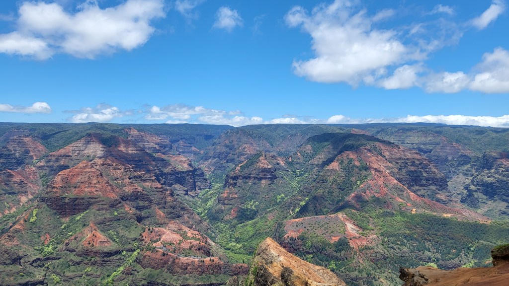 Definitely go to Waimea Canyon in the morning because the fog covered a bunch of the views by the time we got there.