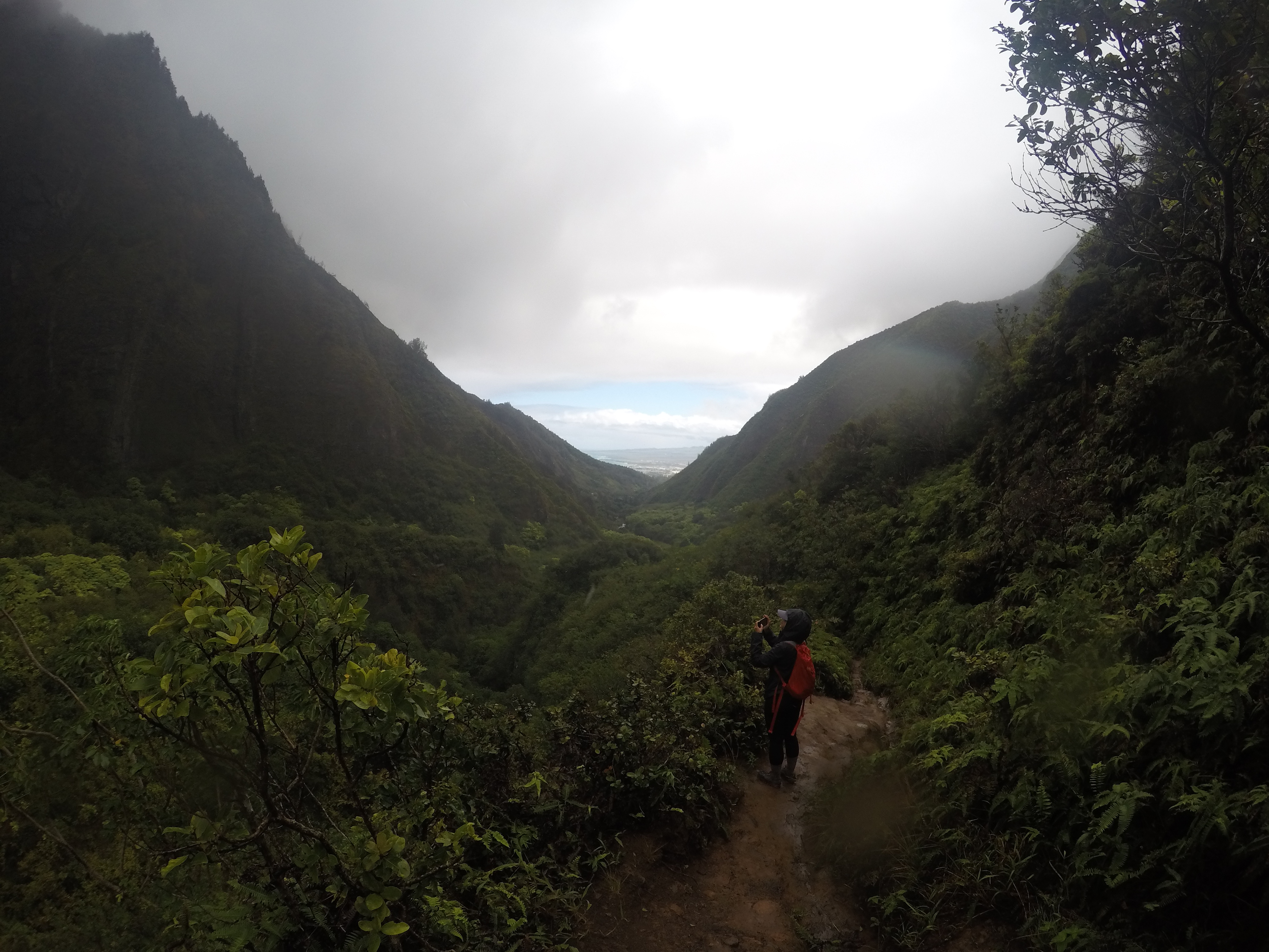 On the next day we visited ʻĪao Valley State Monument. We hiked the “secret trail” and got to experience the typical Hawaii lush jungle. It rained on us, as expected, but we when reached the end of the trail the valley was covered in rain and we couldn’t see through the clouds. We weren’t disappointed because the hike was really fun and exciting. Unfortunately you aren’t allowed to hike the trail anymore. Or maybe you can but know the risks (rolled ankles and possible citation).