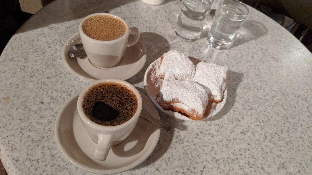 Cafe du monde definitely lived up to the hype. I thought it was a typical touristy spot but the beignets and the coffee mixed with the environment definitely set the vibe. It also helped that an Auntie was our waitress and let us in on all the gossip.