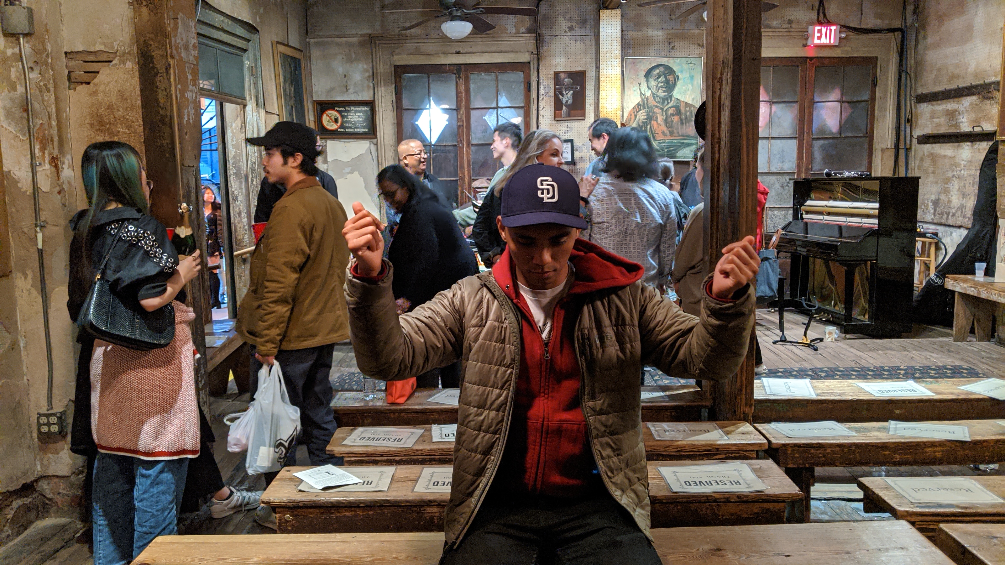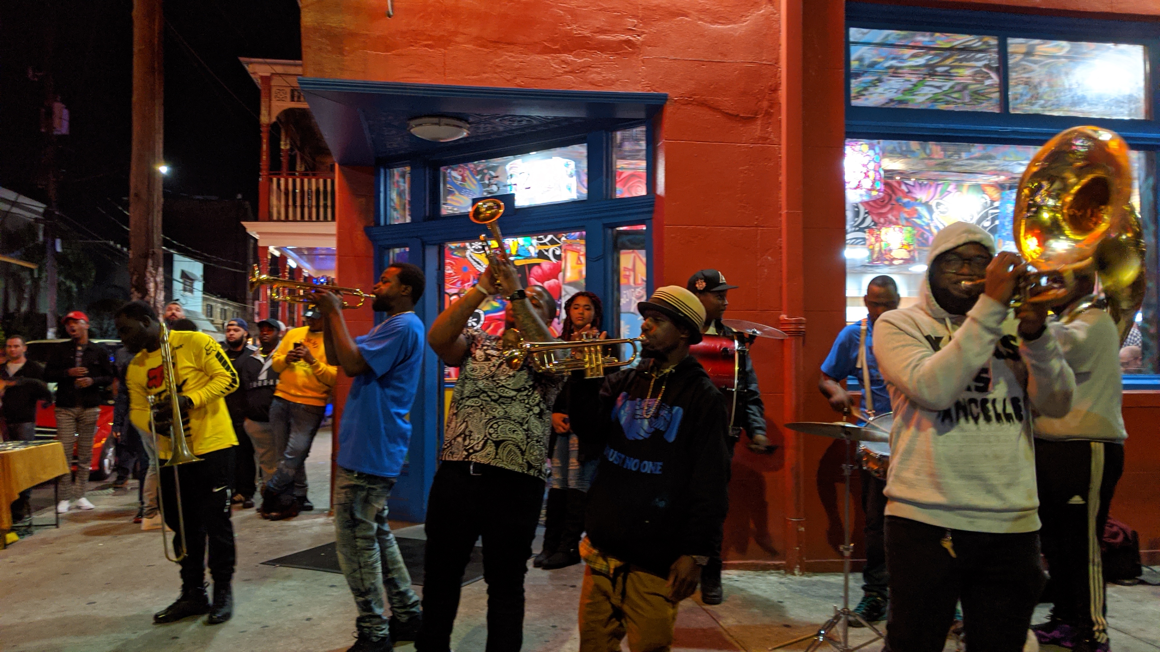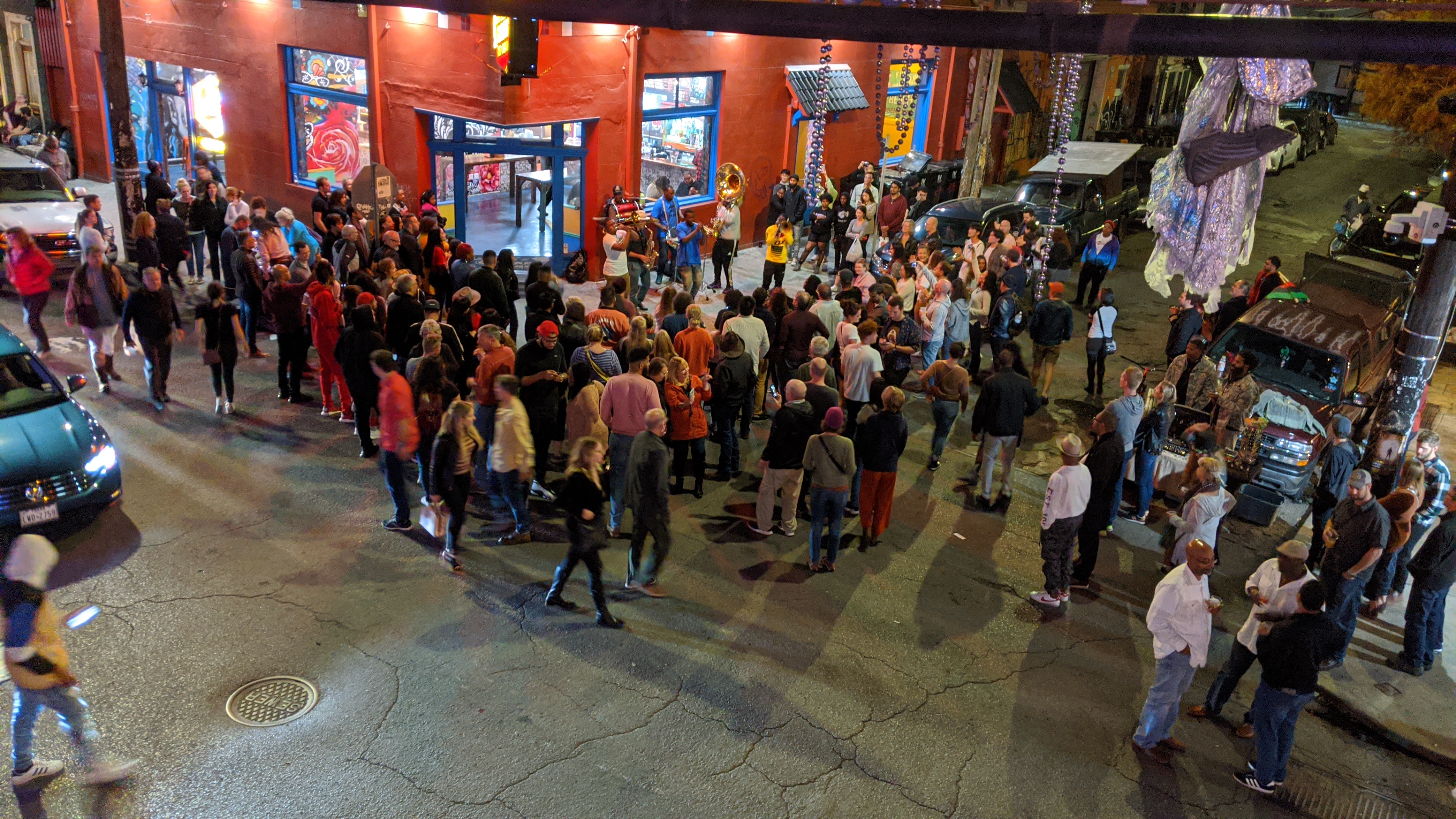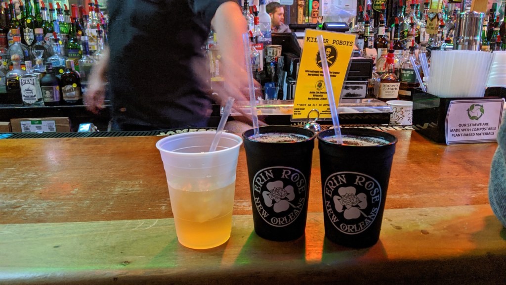 We walked towards Frenchmen Street so we could listen to some more jazz. I really enjoyed this area over Bourbon Street. We drank some sour beers at St Brieux Carre Brewing, ate a vegan hotdog and watched the jazz performers from the a balcony of Dat Dog, and stumbled on an art block market type.