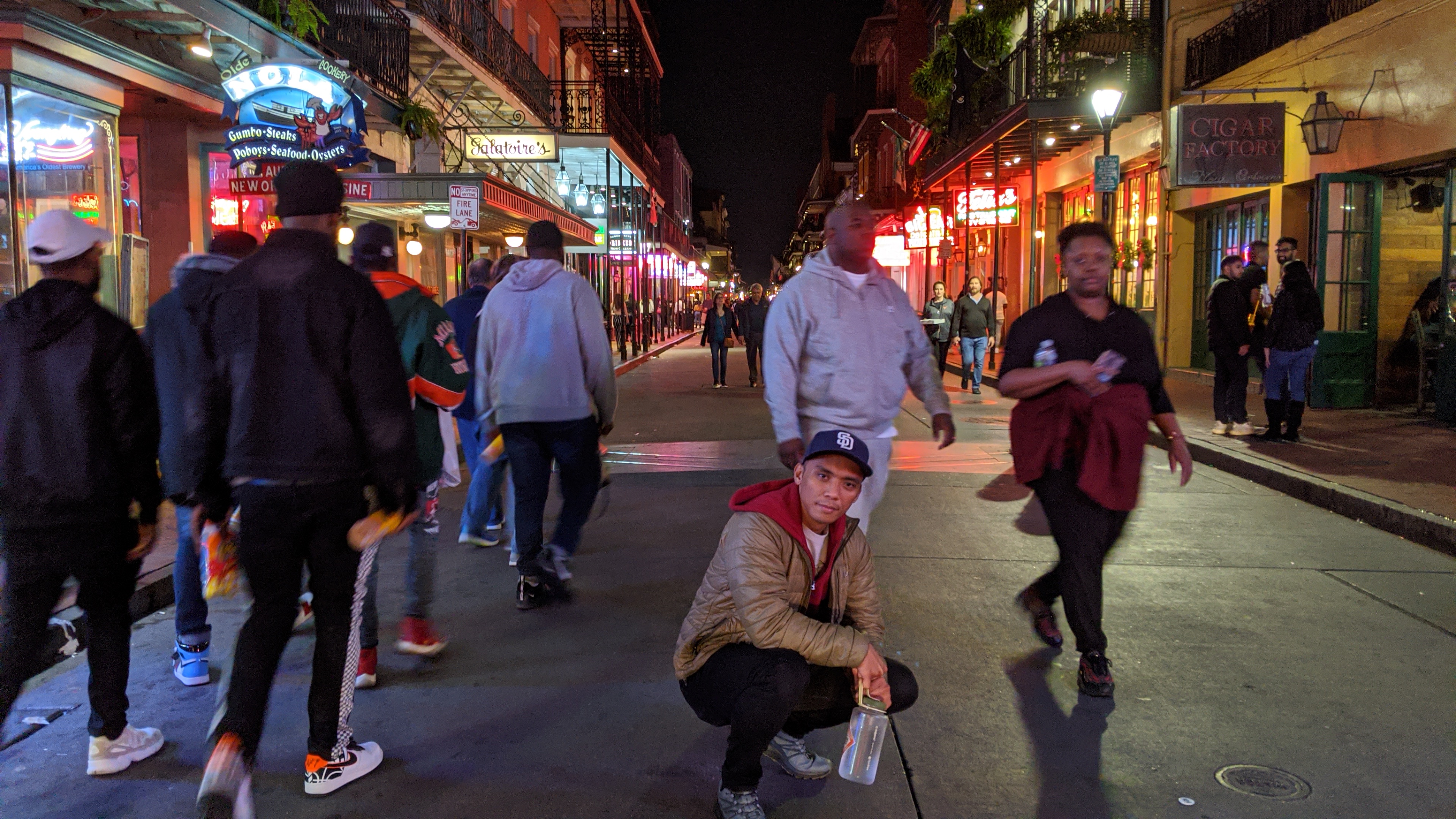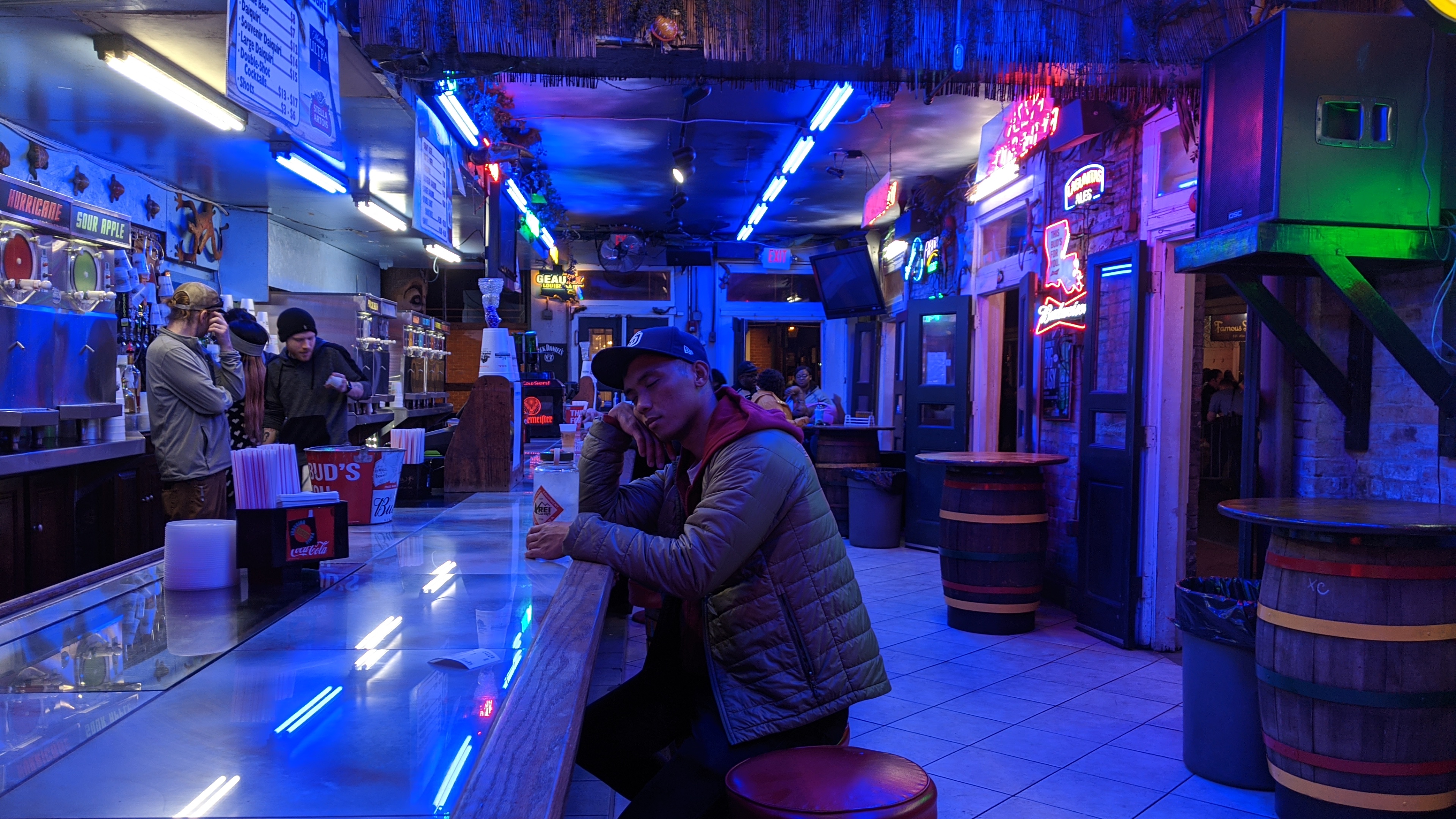 The first night we had Thanksgiving lunch at Compere Lapin. Unfortunately I can’t find pictures of the place. It was really awesome though because they catered to our diet. The rest of the night we drank our through through Bourbon Street. We drank a Hurricane at Pat O’brien’s, saw a show at the Piano Room and at the Preservation Room (highly, highly recommend!), and got the purple drink at the Lafitte’s Blacksmith Shop. You can see me deteriorate in the following pictures.