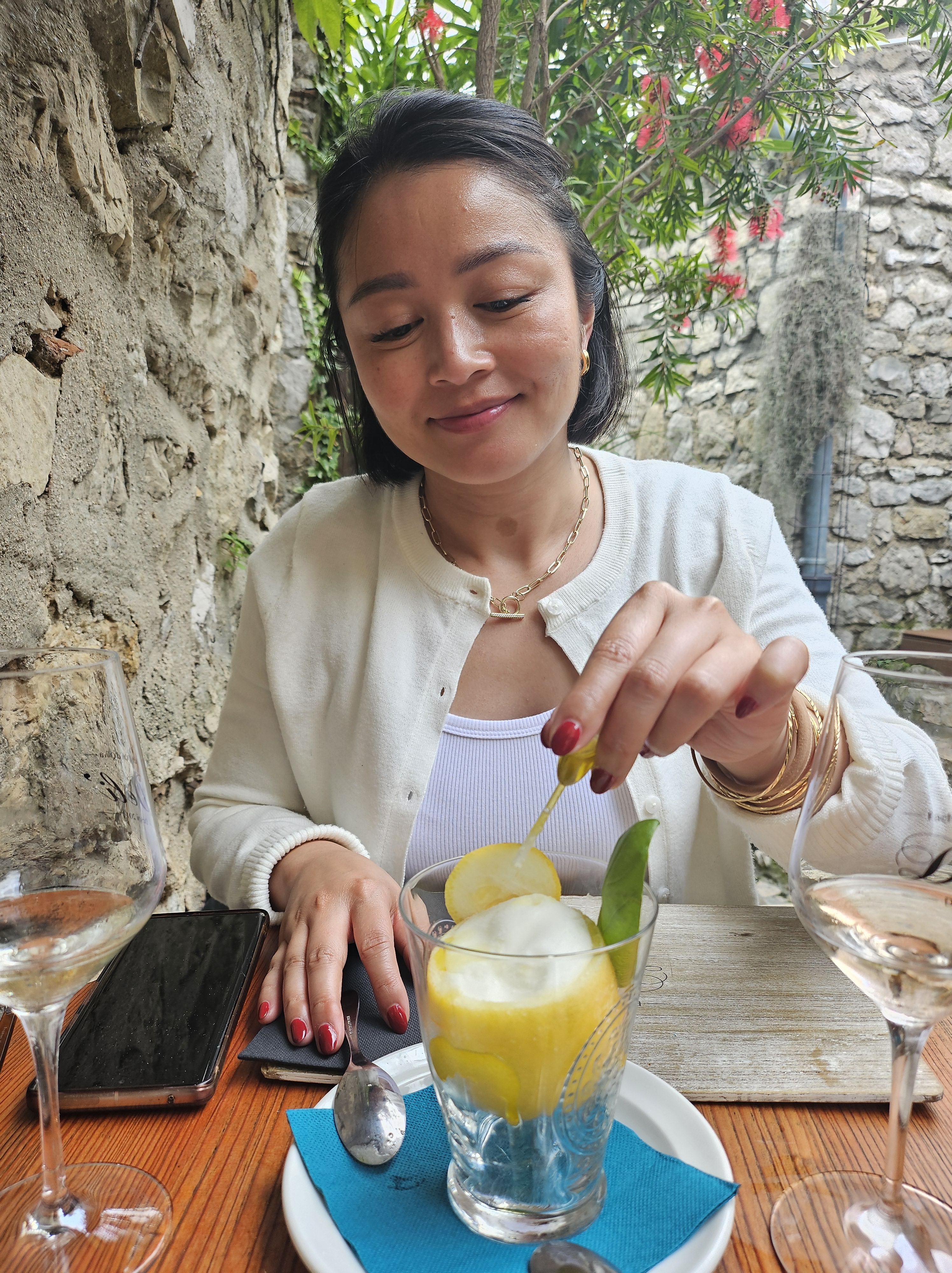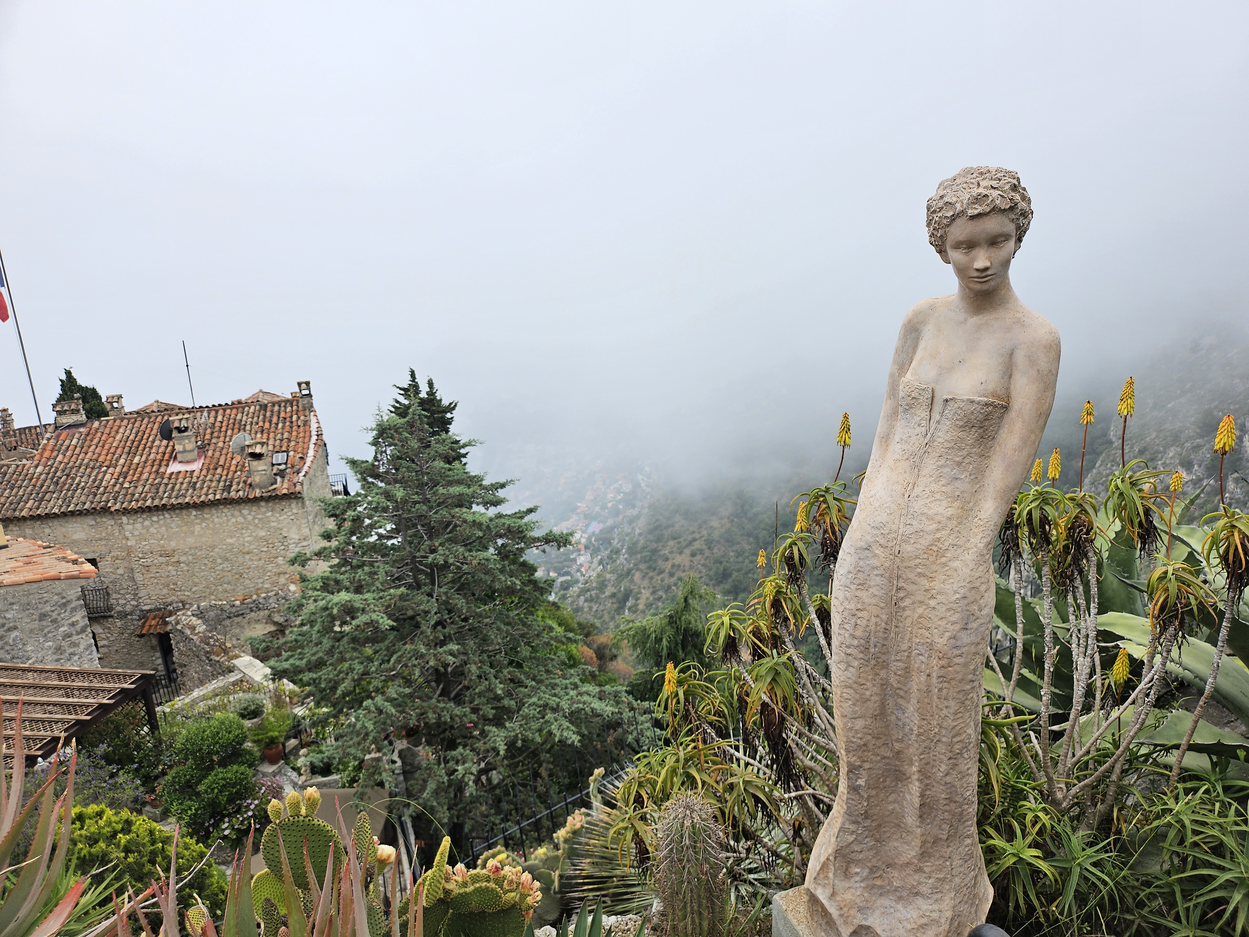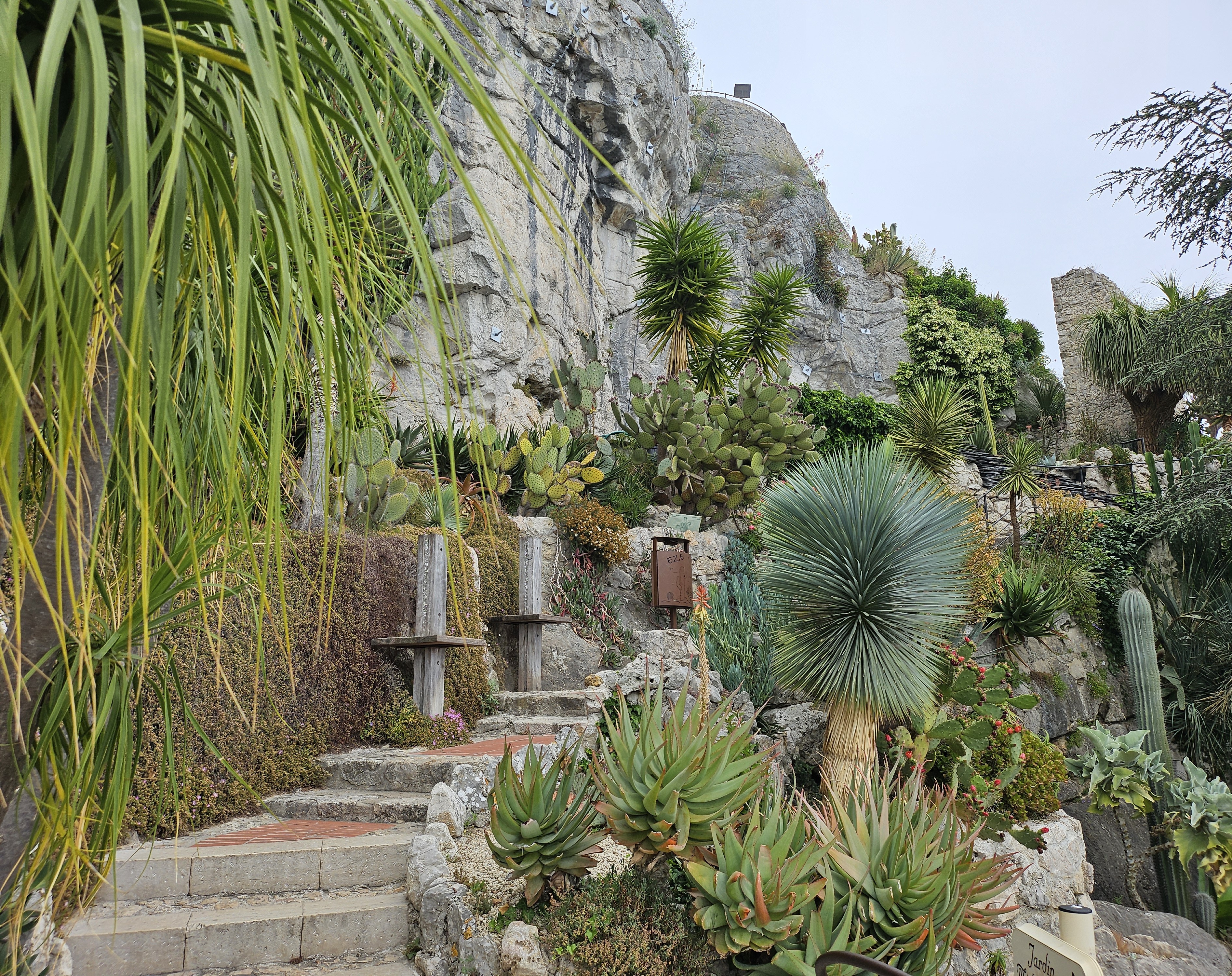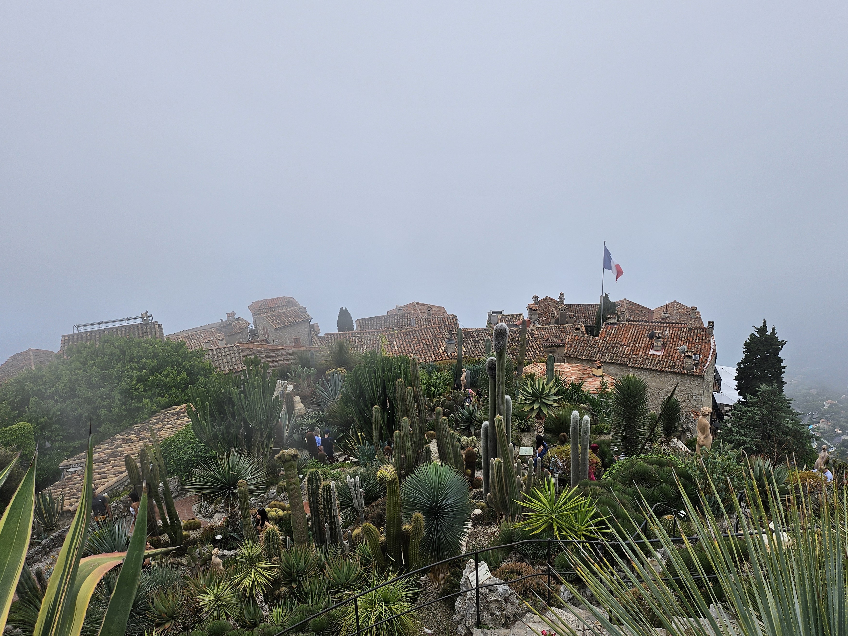 After our little picnic (quick nap), we took a bus to a little town called Eze. The bus ride from Monaco little under an hour and goes up winding roads. Eze is an old medieval town perched on top of a mountain. Unfortunately it was cloudy when we got there, but were sections that were clear that teased the type of view the town has to offer.We walked through the Jardin d’Èze which had a bunch of cacti and succulents. Really wish it wasn’t cloudy. The green of the garden would have been a really nice contrast with the blue water. We shared a delicious sandwich at a restaurant called Deli and cooled off with a clutch olive oil lemon sorbet.