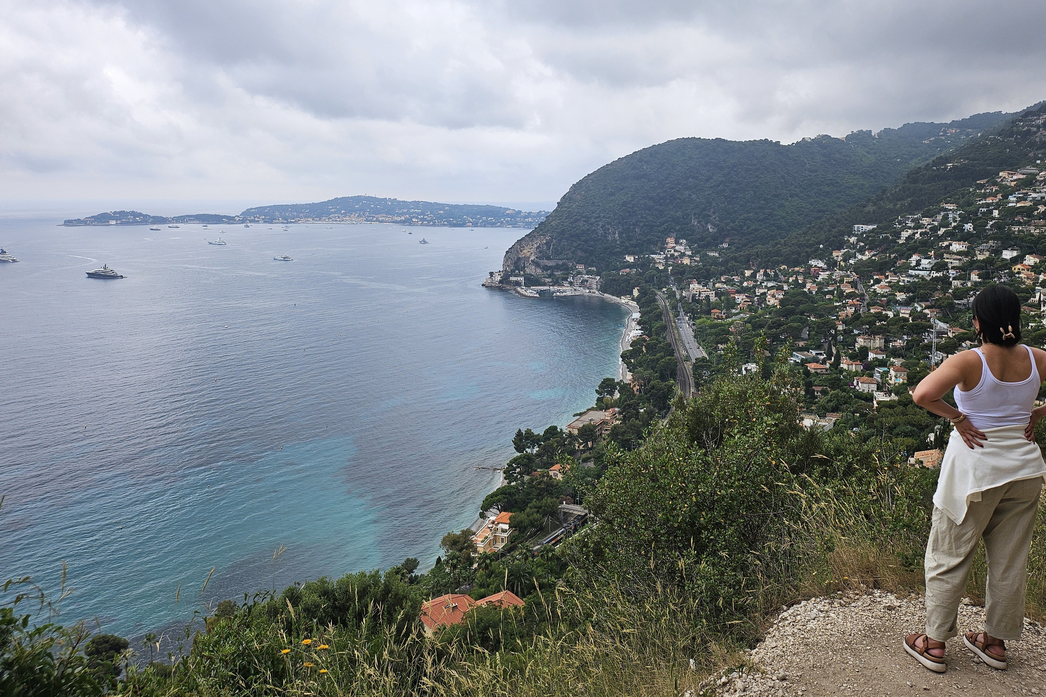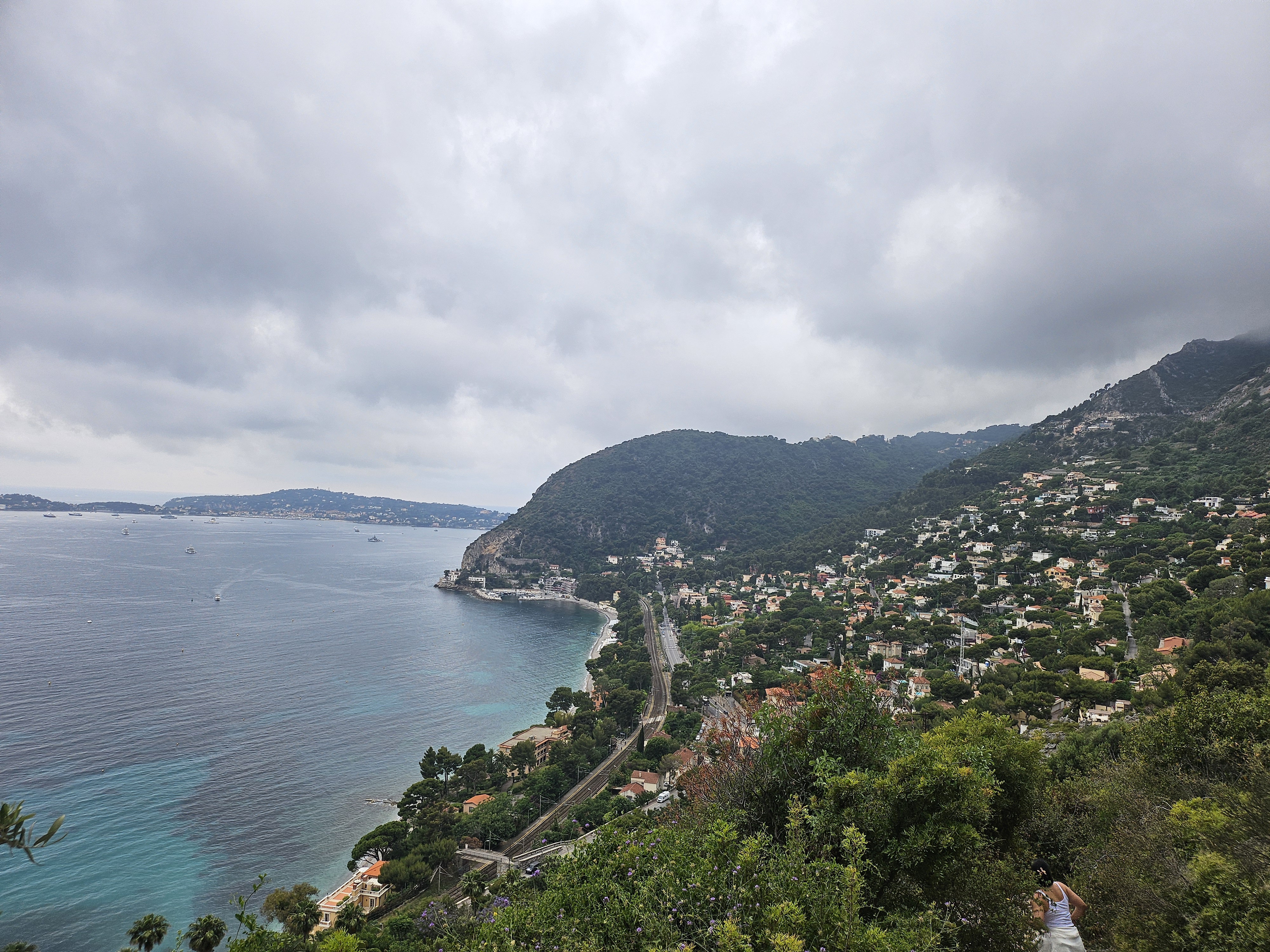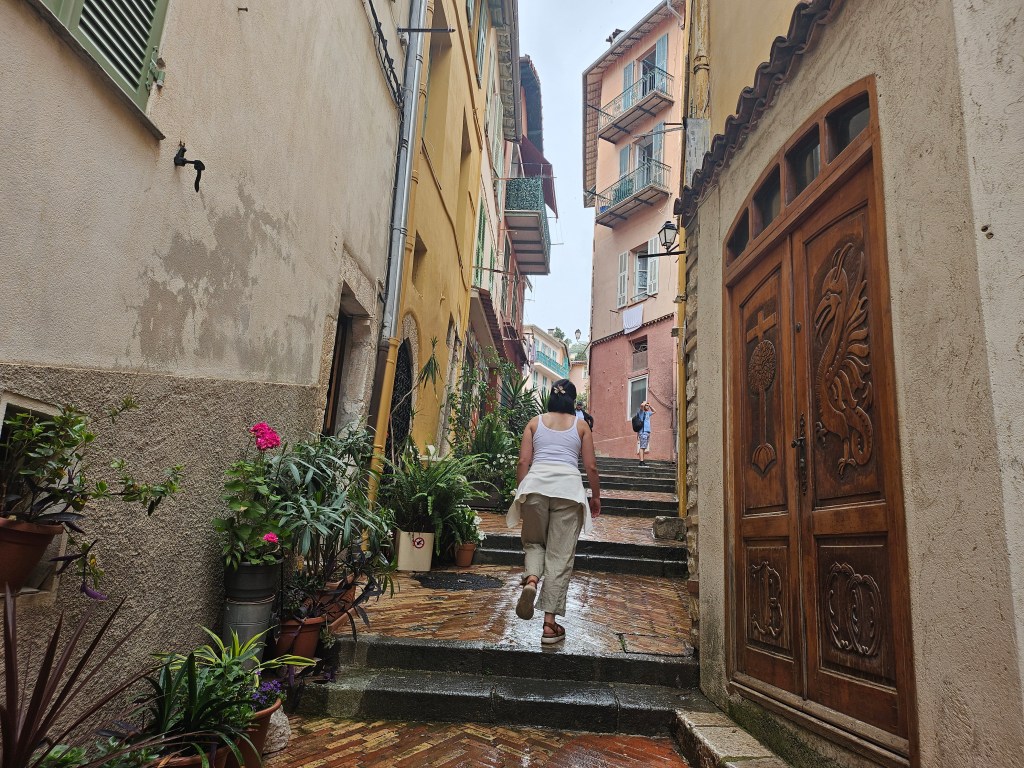 We eventually got to the train station and ran to get in, assuming we could tap-to-pay inside the train. We were wrong. The train was also really packed. The initial plan was to ride the train from Eze to Nice-VIlle so we could have dinner in the area but it was starting to drizzle, our Airbnb would’ve been a far walk from the destination, and we didn’t want to risk staying on the train and get fined (though with how packed it was, we probably would’ve been good). We decided to get off the train at Villefranche-sur-Mer and take the bus which would’ve dropped us off closer to our Airbnb. It had started to drizzle at this point and the walk from the Villefranche-sur-Mer to the main road was longer than we expected. The walk through the alleyways was pleasant despite the warm drizzle wetting us. I wish I could end this post saying the bus ride was dandy. But there were some delays that ultimately had us waiting in the bus stop for over an hour. While waiting, a lady had asked my when the next bus was coming in French and her patience was not there. I told her her it’ll be fifteen minutes until the next bus (in the French I’ve never spoken before) and she didn’t hide her displeasure and annoyance. She needed to get to wherever she needed to. A car close by had stopped to pick someone and she paced towards it. Just as the car driving away, she sprints and hits the car and asks for a ride. She was very animated and the driver eventually let her in after three minutes of negotiation.